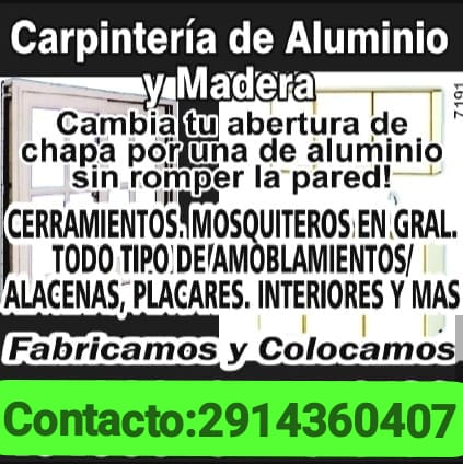 Cambia tu abertura de chapa por una de aluminio sin romper la pared!. Cerramientos, mosquiteros, en gral. Todo tipo de amoblamientos. Alacenas/Placares/Interiores y mas!.